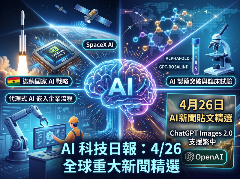 今日AI產業十大重點新聞(4/24) April 24, 2026 by AI Suck 2026年4月24日人工智慧領域的重大發展,今天可以看到 AI 基礎建設、代理(Agentic AI)與全球戰略佈局進入了關鍵的爆發期。